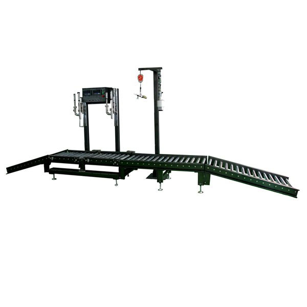* 容器輸送:碳鋼噴塑框架、動力輥道輸送